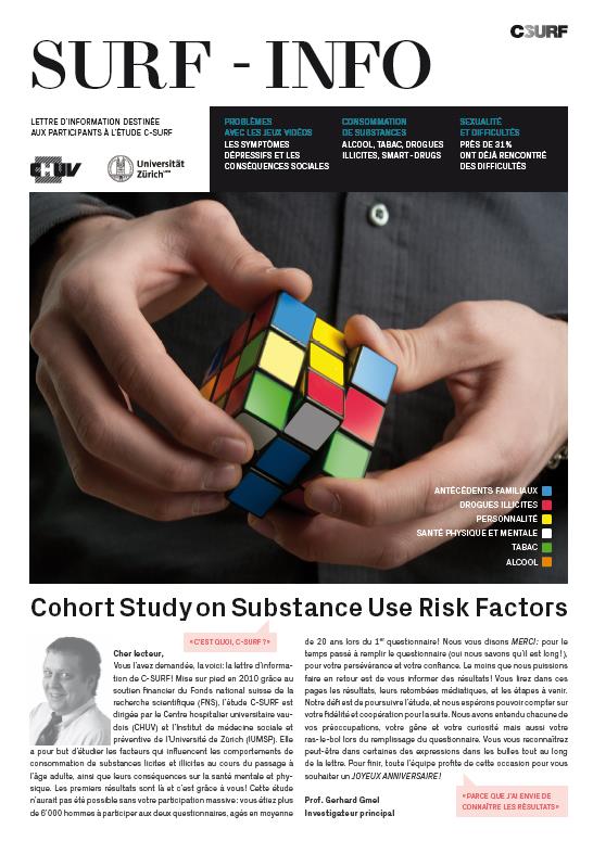 Etude de cohorteC-SURF est une étude de cohorte dirigée par le Centre hopitalier universitaire vaudois (CHUV) et l'Université de Zurich. Elle a débuté en 2010 et continue encore aujourd'hui, grâce au soutien financier du Fonds national suisse de la recherche scientifique.